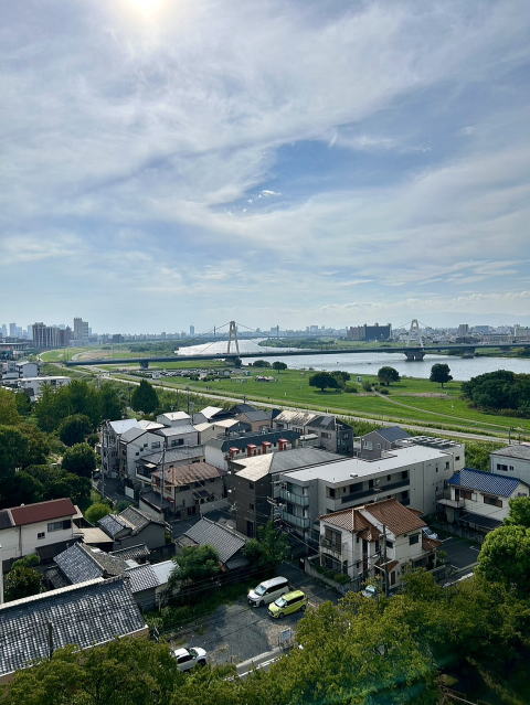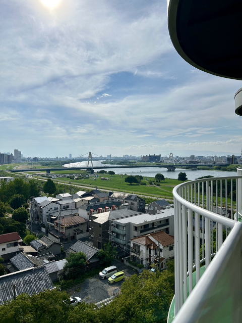 バルコニーからは梅田のビル群、淀川、花火大会が一望!!