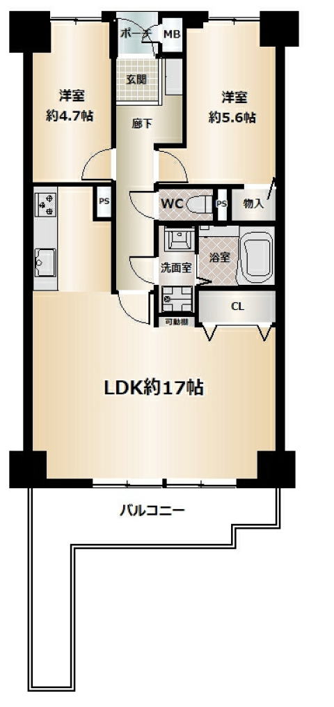 | 専有面積(壁芯) | 60.45㎡ | 管理形態 | 全部委託 |